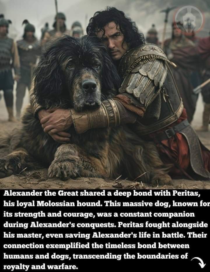 Peritas was a Molossian hound, a massive breed famed for strength, bravery, and loyalty. Gifted to Alexander in his youth, the dog grew alongside the future conqueror, not only as a pet but as a warrior in spirit. βοΈπ₯ Legends tell that Peritas fought beside Alexander in several battles β fearlessly charging into the chaos of war, protecting his master with unmatched devotion. In one fierce encounter, when Alexander was nearly overwhelmed by enemy forces, Peritas leapt into the fray, defending him with such ferocity that it turned the tide of battle β saving the life of the man destined to shape the world. π©Έπ