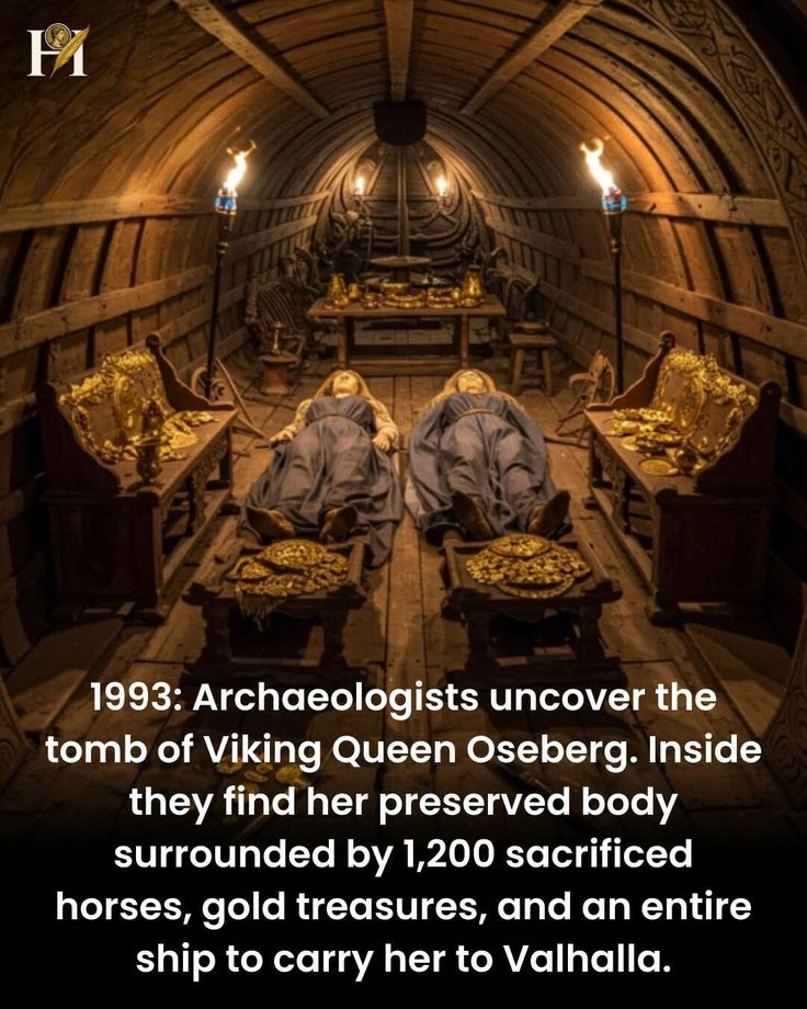 In the cold soil of Norway, archaeologists made one of the most breathtaking discoveries in Viking history โ the Oseberg Ship Burial, the final resting place of a Viking queen and her companion. โ๏ธโต Though often retold in modern legend as a discovery from 1993, the Oseberg burial was actually unearthed in 1904, yet it remains one of the most magnificent archaeological finds ever uncovered. โจ๐บ
