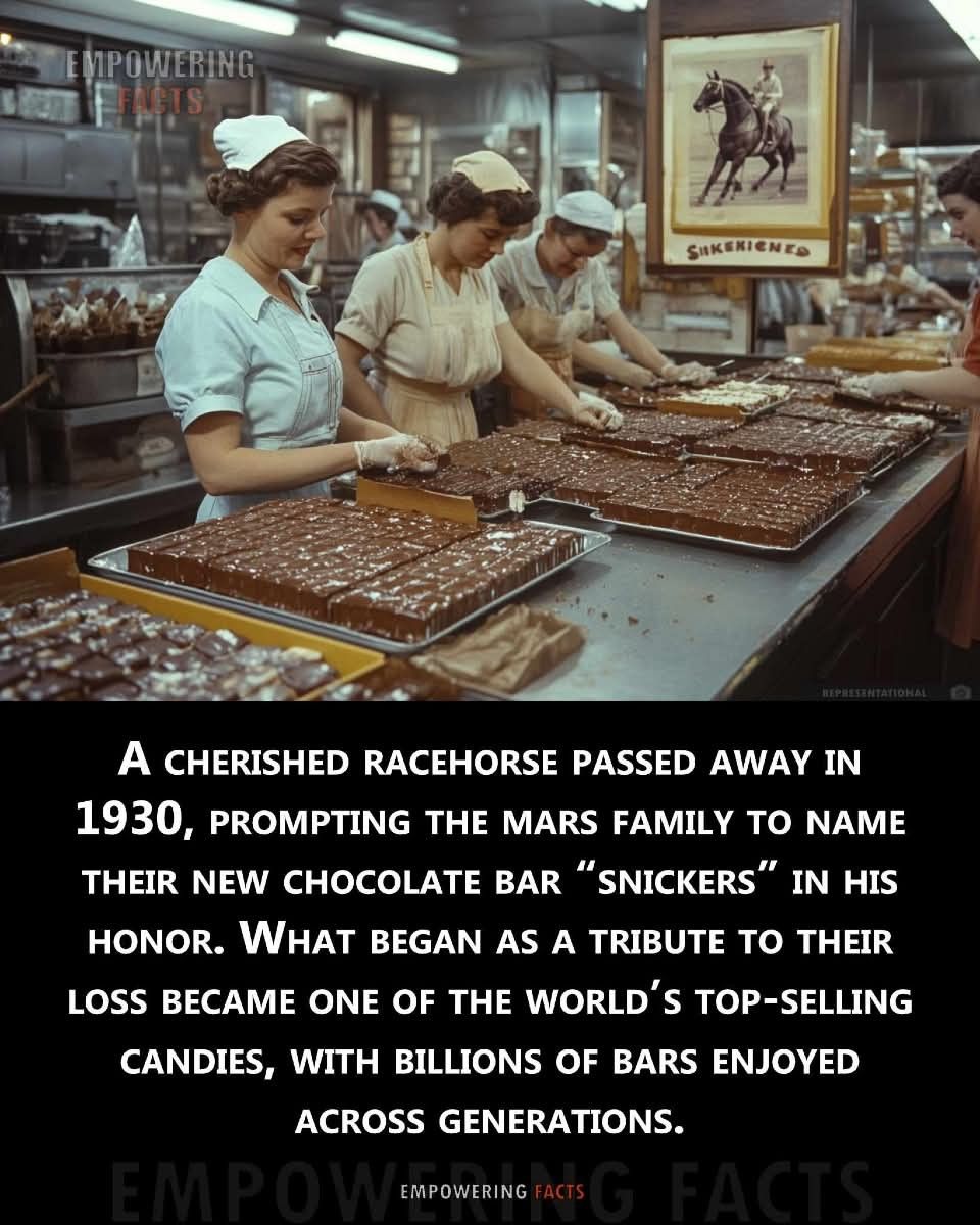 Every great story has a touch of love, loss, and legacy โ and even one of the worldโs most famous chocolate bars began with just that. โค๏ธ In 1930, the Mars family, founders of the iconic Mars confectionery empire, mourned the passing of their beloved racehorse named Snickers. ๐ด๐ To honor their cherished companion, they decided to name their newest creation โ a rich blend of nougat, caramel, and roasted peanuts covered in milk chocolate โ after him. ๐ซ๐