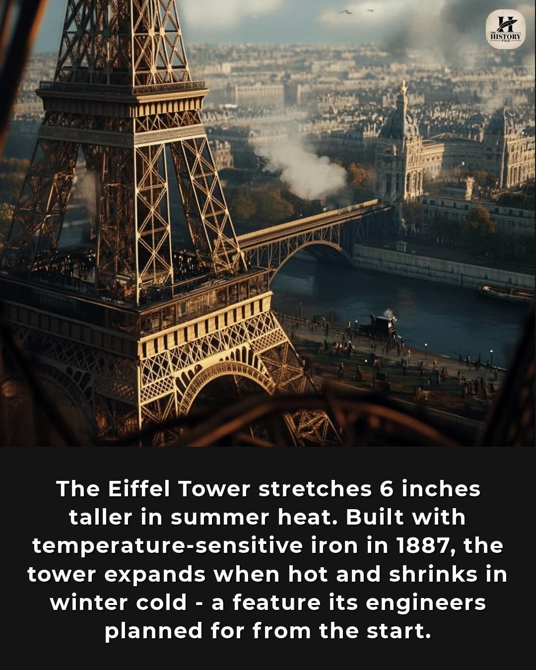The secret lies in the temperature-sensitive wrought iron used to construct its 18,000 individual pieces. When heated, iron expands โ a simple law of physics that Eiffelโs engineers understood and masterfully accounted for. They designed flexible joints and precise tolerances so the tower could โmoveโ safely without damage. โ๏ธโจ It was an ingenious feature for its time โ turning what could have been a structural flaw into a triumph of engineering foresight. ๐ง ๐ก