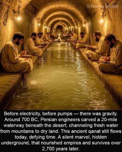 Even more astonishing, some of these qanats still flow today, over 2,700 years later, still nourishing fields, villages, and memories of a civilization that understood sustainability long before the word existed. π°οΈπΎ Hidden from sight but vital to life, these subterranean rivers became the lifeblood of ancient empires, feeding both cities and dreams.