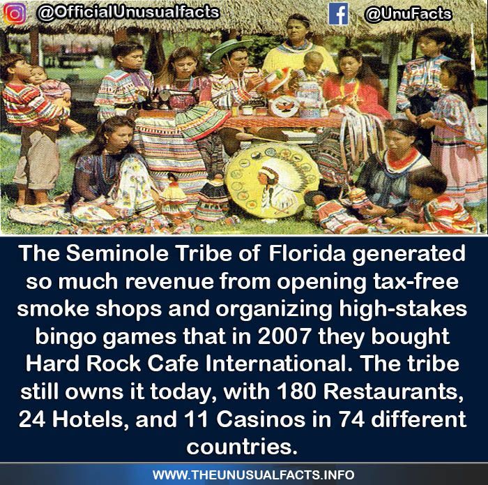 Owning a global brand known for its music, luxury, and bold style, the Seminole Tribe achieved what few indigenous communities had ever done: turning cultural survival into economic triumph. Today, the tribe still proudly owns the Hard Rock empire, which now includes 180 restaurants, 24 hotels, and 11 casinos across 74 countries. Each Hard Rock guitar, neon sign, and rock anthem echoes the story of a people who refused to be forgotten — who turned struggle into strength and culture into capital. 🌺💪