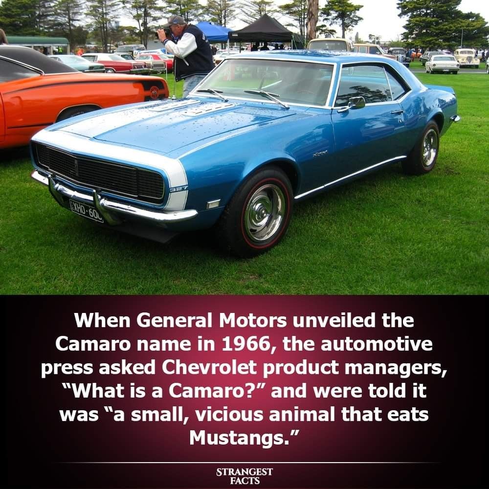 In 1966, the automotive world was buzzing with anticipation. Fordβs Mustang had already conquered the roads β and the hearts of millions. But then came Chevroletβs bold answer: The Camaro. When General Motors unveiled the name, journalists immediately asked, βWhat is a Camaro?β The Chevrolet product managers smiled and replied with legendary wit: βA small, vicious animal that eats Mustangs.β πΎπ₯