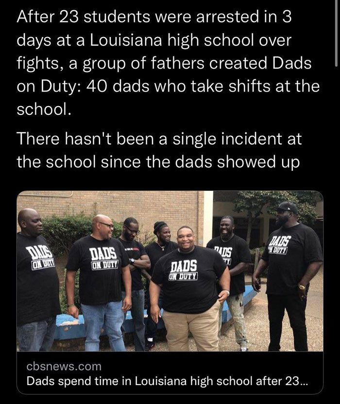 In a world where news about school violence often breaks hearts, one extraordinary story from Louisiana restores faith in humanity and the power of community. ๐ซโจ After 23 students were arrested in just three days due to fights at a local high school, a group of determined fathers decided enough was enough. Instead of blaming or waiting for change, they became the change โ forming a volunteer group called โDads on Duty.โ ๐ผ๐ฅ