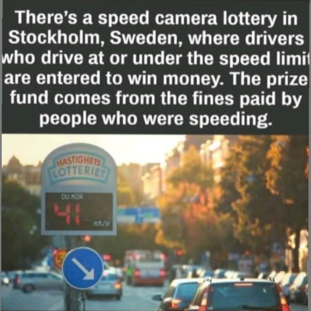 In a world where speed cameras usually spell bad news, Sweden turned the idea upside down โ and made it fun. ๐๐ก In Stockholm, a brilliant social experiment known as the Speed Camera Lottery rewards drivers who obey the rules instead of punishing those who donโt. Anyone driving at or under the speed limit automatically gets entered into a lottery to win real money, with the jackpot funded entirely by the fines paid by speeding drivers. ๐ฐ๐ฆ