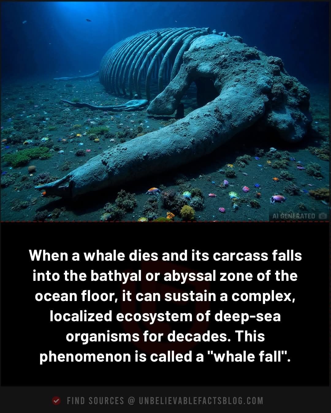 When a whale dies, its story doesnβt end β it transforms into something extraordinary. ποΈ Deep beneath the surface, in the silent world of the abyssal ocean, its massive body gently drifts downward, mile by mile, until it finally settles on the dark seafloor. There, something miraculous happens: from death, new life begins. ππ