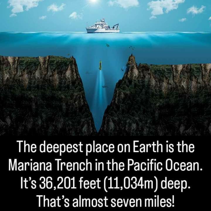 Far below the sunlit surface of the Pacific Ocean lies a world few have ever seen β€” the Mariana Trench, the deepest known place on our planet. πŸ‹πŸŒŒ Stretching an unbelievable 36,201 feet (11,034 meters) deep β€” almost seven miles straight down β€” it’s a realm of crushing pressure, eternal darkness, and alien-like life.