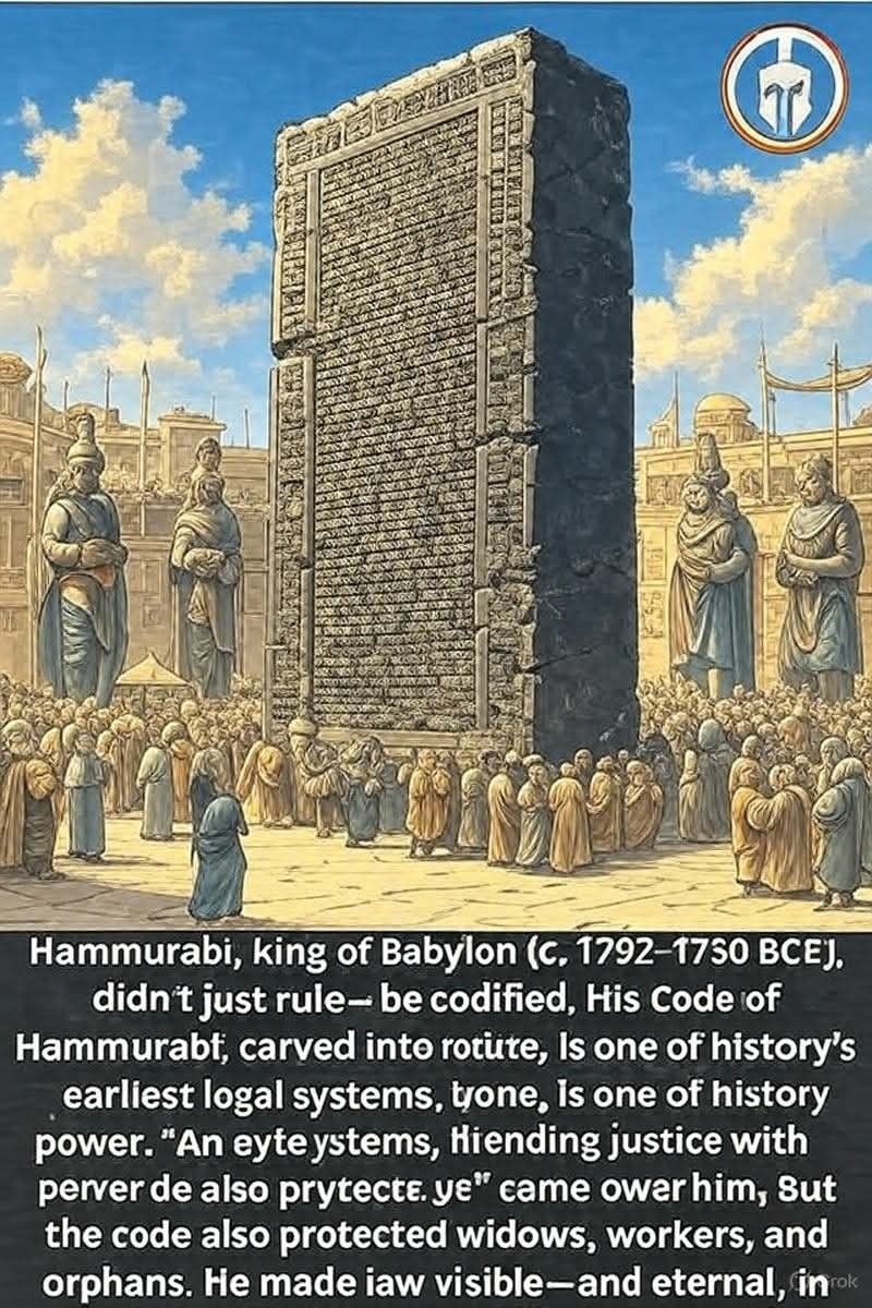 But Hammurabiβs code wasnβt just about punishment β it also protected the weak, including widows, workers, and orphans. β€οΈ It made the law visible, understandable, and eternal β engraved for all to see, a public promise that power would answer to justice.
