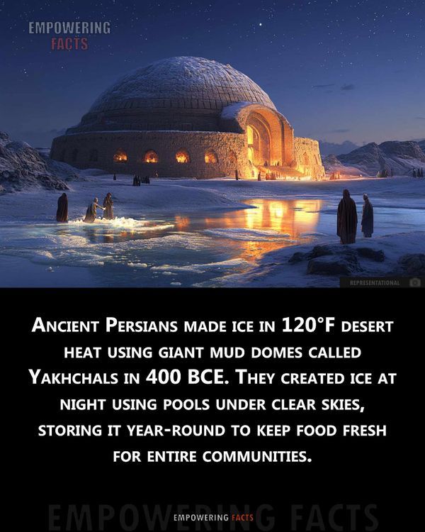 Long before modern refrigeration, the ingenious Persians of the ancient world mastered the art of making and storing ice โ even in desert temperatures that soared above 120ยฐF (49ยฐC). ๐โ๏ธ As early as 400 BCE, they built massive dome-shaped structures of mud and clay known as Yakhchals, meaning โice pits,โ which functioned as natural refrigerators. ๐บโจ