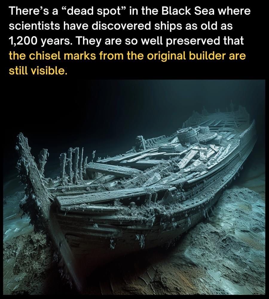 This remarkable preservation is due to the anoxic waters — layers of the sea completely devoid of oxygen below a certain depth. Because oxygen cannot reach these depths, the bacteria and microorganisms that normally decompose organic materials cannot survive there. The result? Ancient wooden ships remain astonishingly intact, with ropes, carvings, and even the original chisel marks of their builders still visible. 😮✨