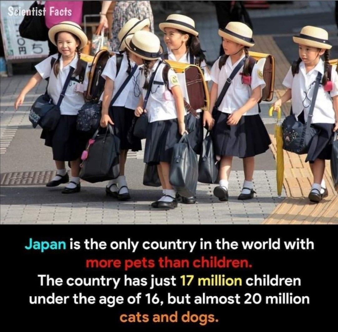 In a nation known for its discipline, technology, and breathtaking culture, Japan now holds a surprising and emotional record โ itโs the only country in the world where pets outnumber children ๐๐พ. According to recent statistics, Japan has just 17 million children under the age of 16, but nearly 20 million cats and dogs living as beloved companions in homes across the nation. This fascinating contrast speaks volumes about modern life, changing priorities, and the deep emotional connection between humans and animals ๐โค๏ธ.