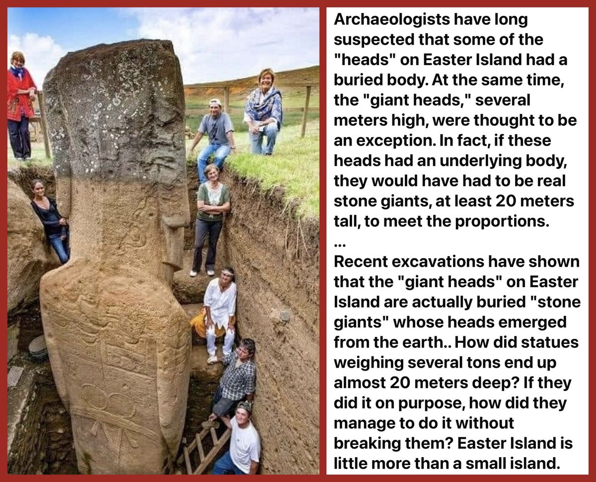 For centuries, the world has gazed in awe at the mysterious stone heads of Easter Island, known as the Moai — silent sentinels standing guard over the remote Pacific island. But few knew that these “heads” were never just heads at all. Beneath the surface, archaeologists discovered that the statues have full bodies, intricately carved and buried under layers of earth and time 😮⛏️.