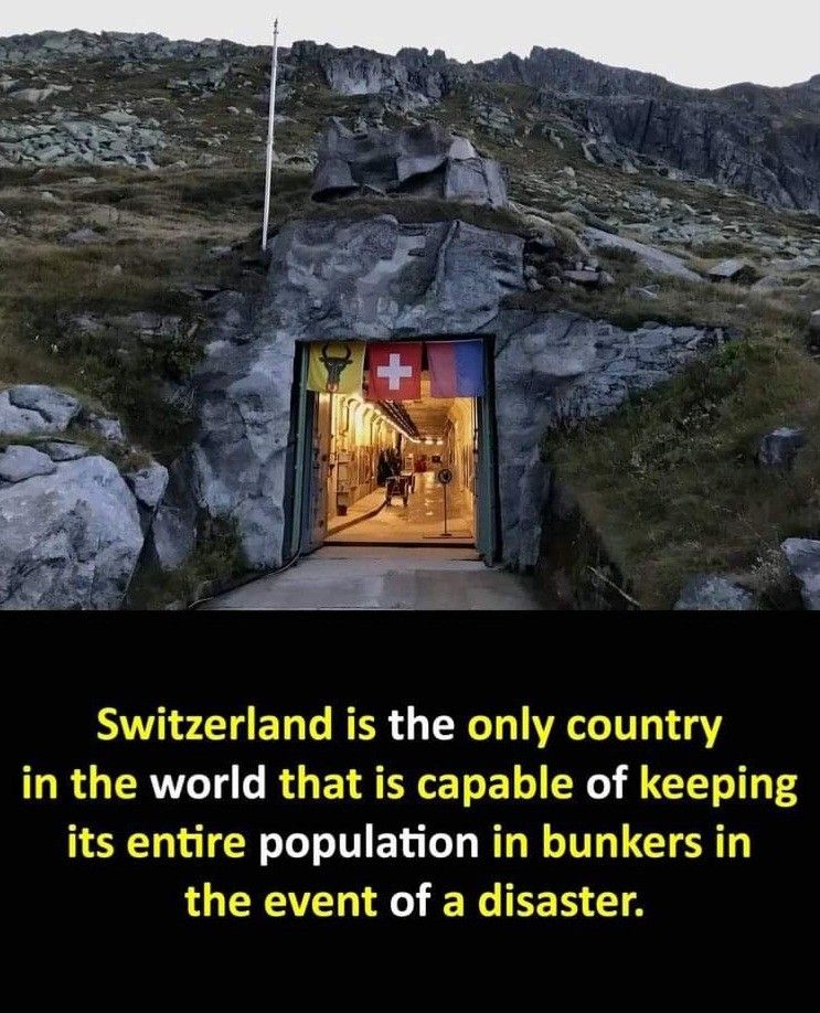 Today, these hidden sanctuaries form a colossal subterranean safety net — with enough space to shelter over 9 million people, complete with air filtration systems, supplies, and blast-resistant doors. From secret military fortresses disguised as rocks to converted Cold War tunnels now used for data protection, Switzerland’s underground world is as fascinating as it is formidable. ⚙️🔦