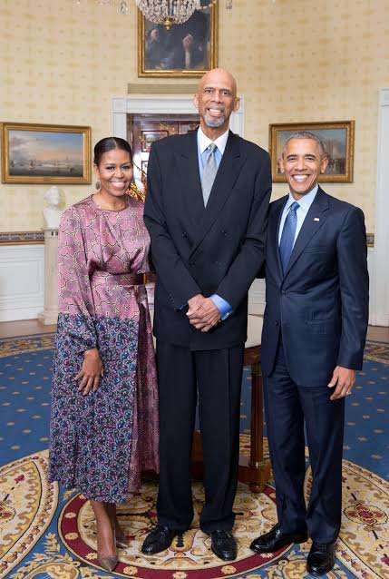 The gentleman in the center, with his calm presence and towering stature, represents excellence and perseverance โ a legend who redefined boundaries on and off the court ๐๐. To his side stands a couple admired around the globe: one, a beacon of leadership, eloquence, and vision; the other, a woman of grace, intelligence, and compassion โ together, a partnership that inspired millions to believe in progress, kindness, and the power of change ๐ช๐.