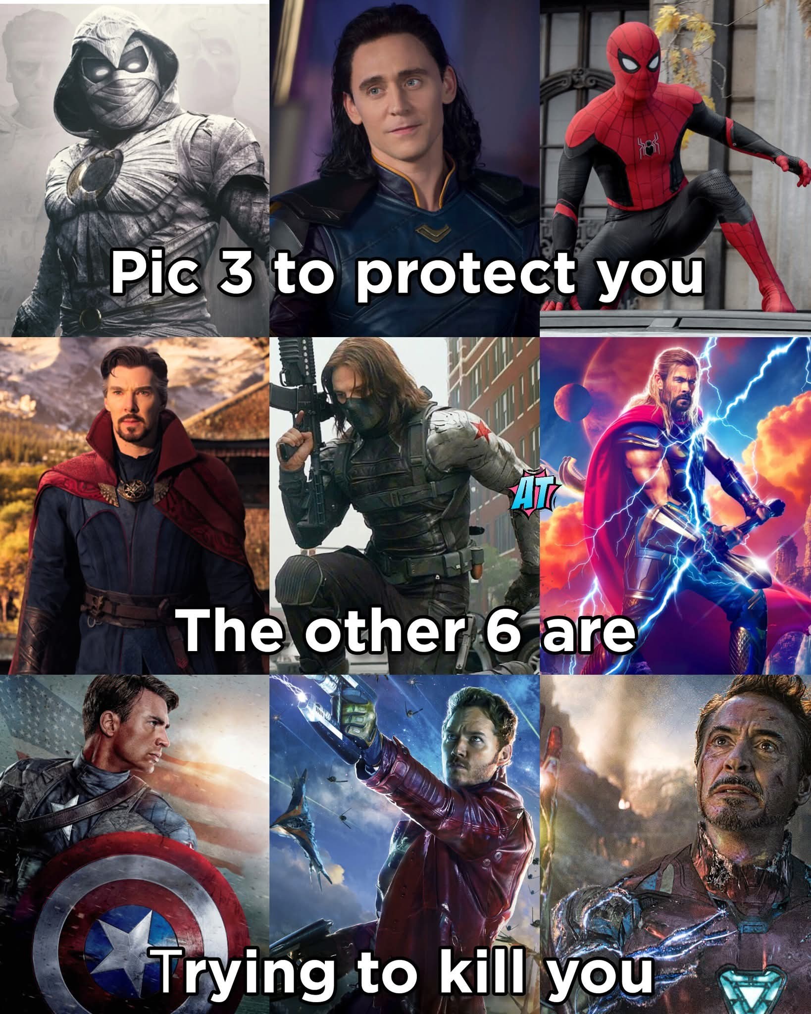 Spiderman, Thor and Dr Strange