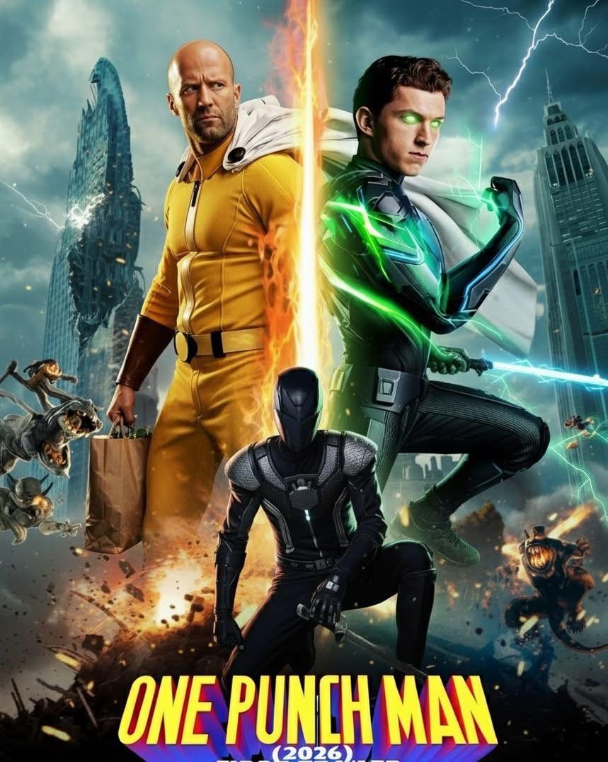One punch to rule them all in *One Punch Man (2026)*, the live-action leap where bald-headed hero Saitama (Jason Statham) shatters the superhero status quo in a monster-mad metropolis.
