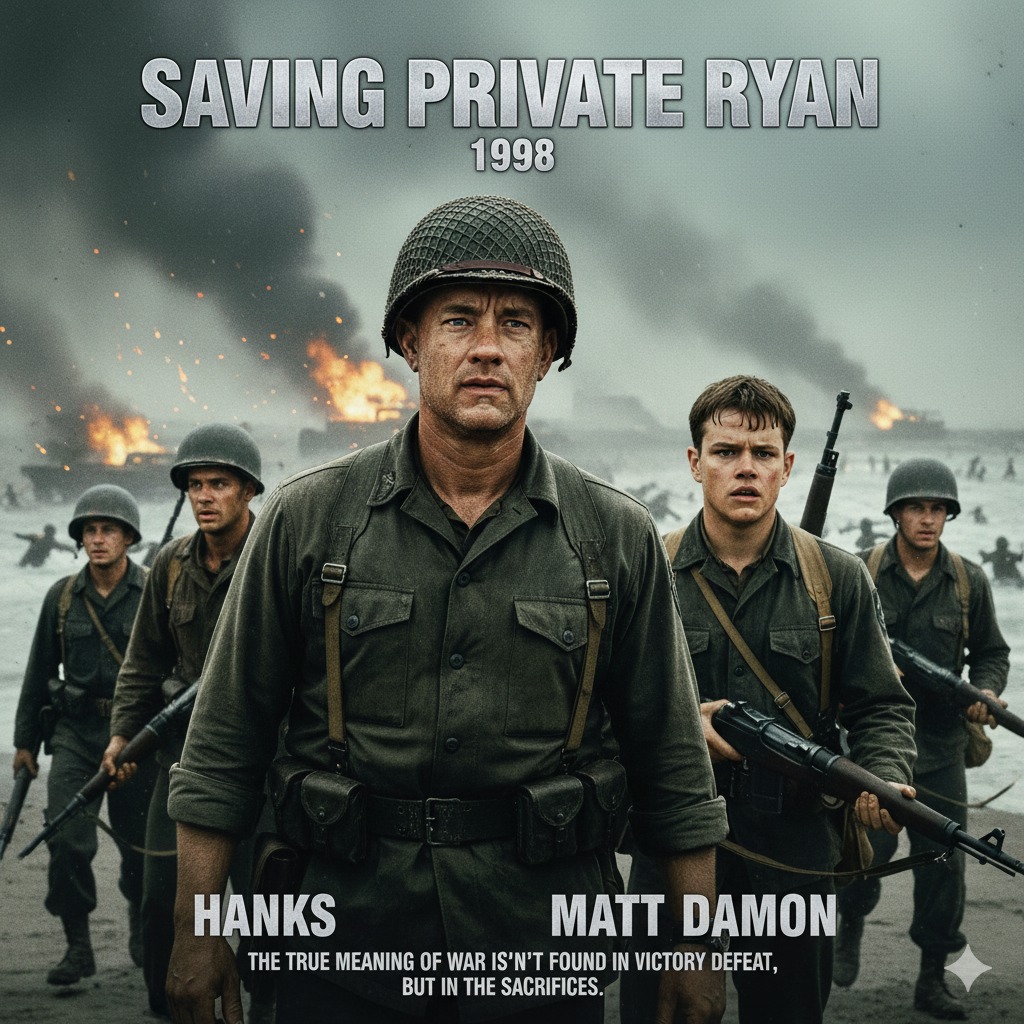 In the midst of war, where life is fleeting and every breath feels like a battle, Saving Private Ryan stands as a testament to the power of sacrifice, honor, and the unwavering bond between soldiers. Tom Hanks portrays Captain Miller, a leader tasked with an impossible mission—to find and bring home a soldier, Private James Francis Ryan, the last surviving brother of four, lost in the chaos of World War II. The cost of this mission is high, but the price of failure is unthinkable. ⚔️💔