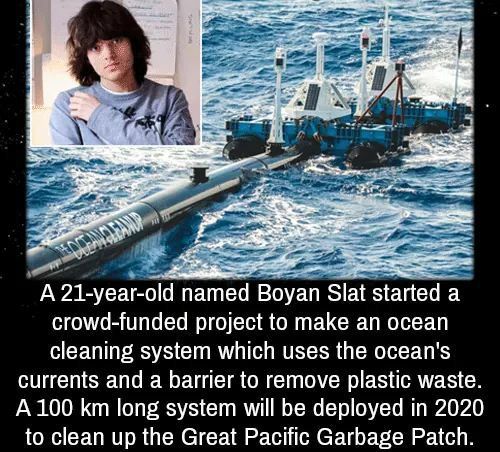 At just 21 years old, a brilliant young man from the Netherlands named Boyan Slat dared to take on one of the greatest environmental challenges of our time — plastic pollution in the oceans🌎✨ While many only talked about the crisis, Boyan decided to act. Using innovation, courage, and the power of collective hope, he founded The Ocean Cleanup, a revolutionary project that harnesses the ocean’s own currents to collect plastic waste floating across the seas. 🚀🌊