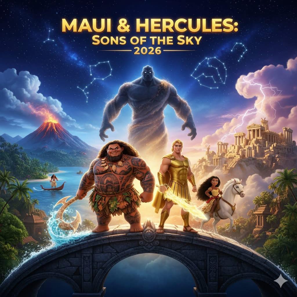 Demigods collide in mythic mayhem in *Maui & Hercules: Sons of the Sky (2026)*, where Polynesian trickster Maui (Dwayne Johnson) and Greek hero Hercules (Taron Egerton) are thrust together by a cosmic rift unleashing ancient Titans across realms, forcing the unlikely allies to team up for a globe-spanning gauntlet of gods and glory.