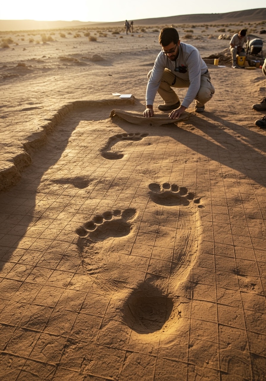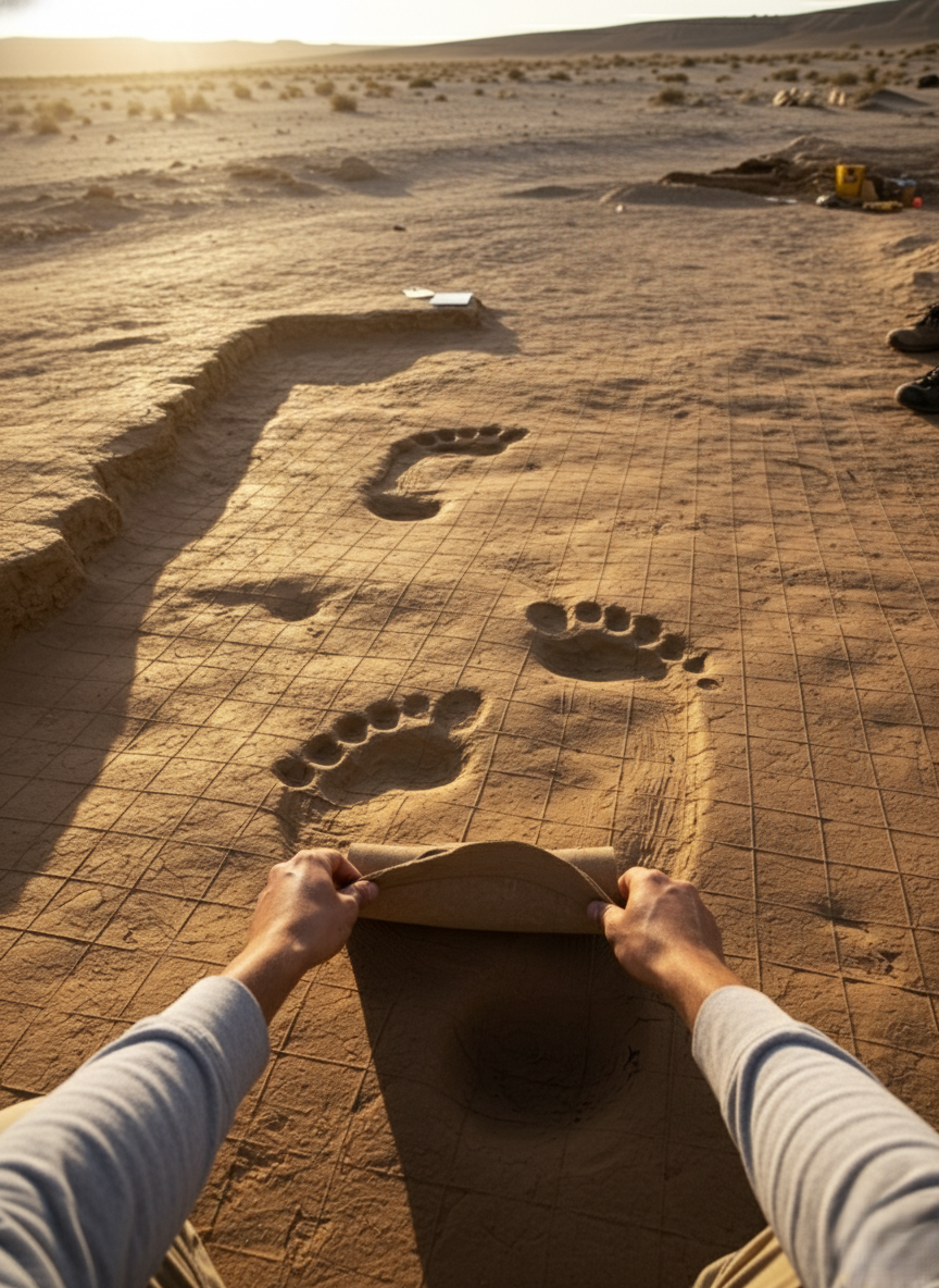 BREAKING DISCOVERY: GIANT FOOTPRINTS FOUND IN ANCIENT DESERT SITE!
