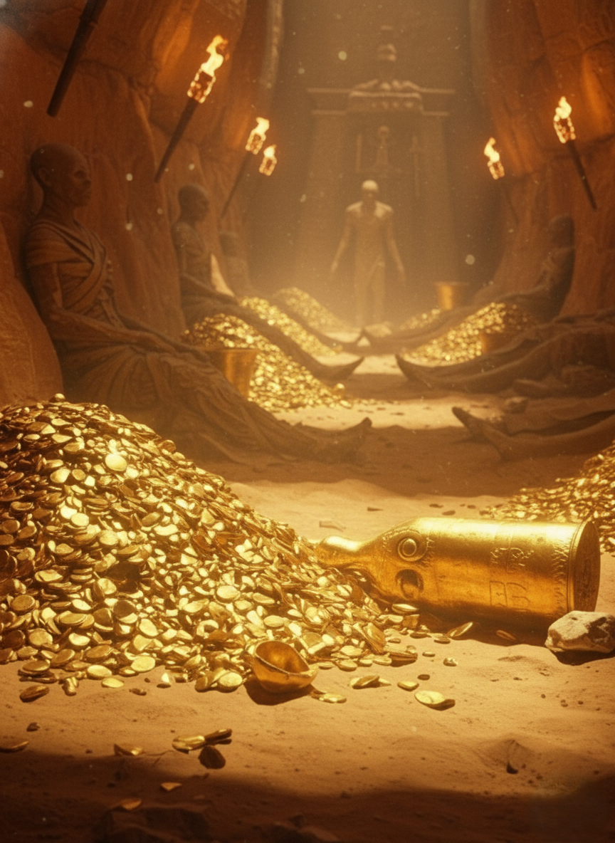In what could be one of the most breathtaking archaeological finds of the modern era, researchers excavating a remote section of desert have unearthed a vast subterranean tomb glimmering with untouched treasures — an opulent chamber overflowing with gold coins, jeweled ornaments, and intricately crafted relics that appear to predate any known empire. The tomb’s interior walls are lined with perfectly preserved mummified figures, each positioned in ritual formation around a central sarcophagus cast entirely in gold. “It’s as though we’ve opened a portal into a forgotten civilization,” said one archaeologist on-site before officials abruptly restricted access. Early analysis of inscriptions and symbols suggests an advanced culture whose understanding of metallurgy, astronomy, and preservation far exceeds expectations for its supposed age.